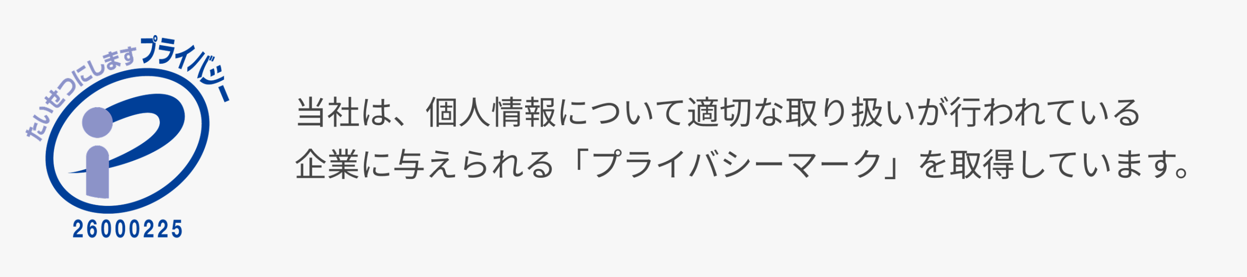 今後もプライバシーマーク認定事業者として、より一層の安心と信頼をいただけるよう、個人情報保護のための更なる安全対策と、情報管理の強化に努めてまいります。